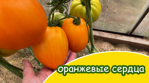 Сбор оранжевых сердцевидных крупноплодных томатов в начале августа