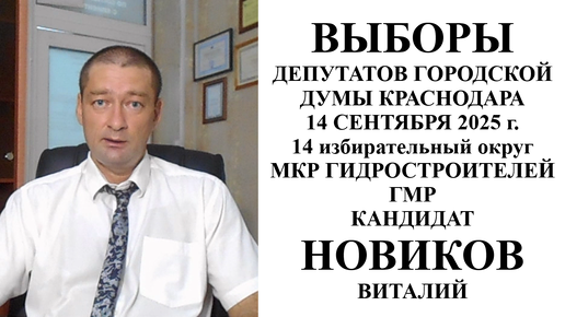 Кандидат в депутаты городской Думы Краснодара 2025 г. Новиков Виталий Валерьевич