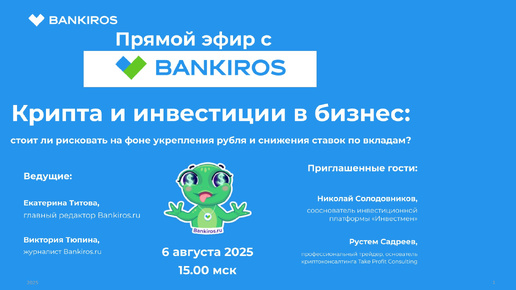 Крипта и инвестиции в бизнес. Прямой эфир Банкирос 6 августа 2025