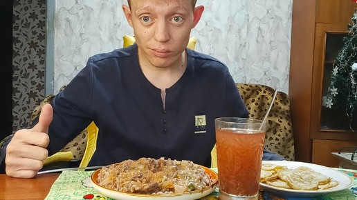 Мукбанг// Гречка С Мясом И Подливой Жареные Кабачки Компот