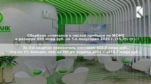 Чистая прибыль Сбербанка по МСФО за 1-е полугодие выросла на 5,3% г/г