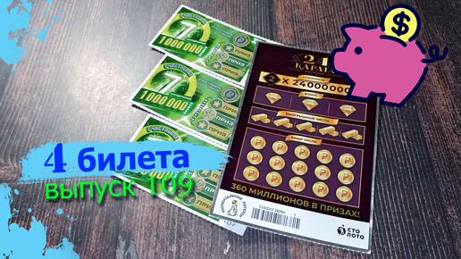 4 БИЛЕТА | МОМЕНТАЛЬНЫЕ ЛОТЕРЕИ | 24 КАРАТА, СЧАСТЛИВАЯ 7 | Выпуск 109 #столото #выигрыш #лотерея
