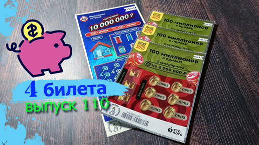 4 БИЛЕТА | МОМЕНТАЛЬНЫЕ ЛОТЕРЕИ | РУССКОЕ ЛОТО, ЖИЛИЩНАЯ ЛОТЕРЕЯ | Выпуск 110 #столото #выигрыш #лотерея