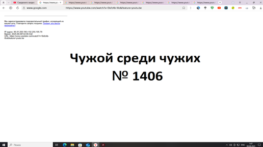 Чужой среди чужих [2025 Год.] № 1406.YouTube Канал ультиматум 21RUS. Недоступны видео на канале.