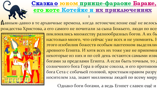 Сказка о юном принце-фараоне Бараке его коте Котейке и их приключениях.