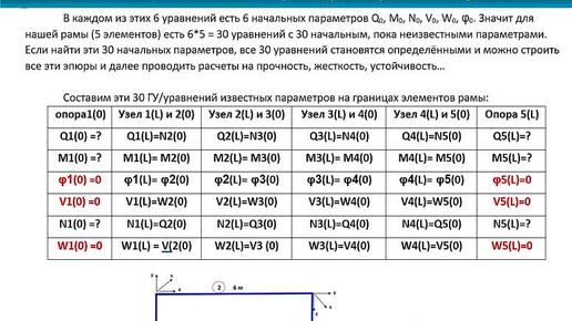 Видео 4. Рамы. Пояснение метода начальных параметров. Граничные условия.