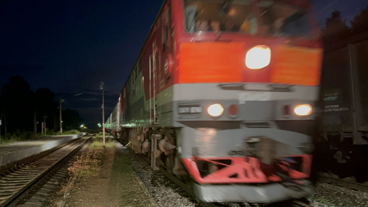 «С опозданием почти час!» Тепловоз «Тапок» ТЭП70 - 0248 с пасс.поездом на ст.Земцы, июль 2025 года