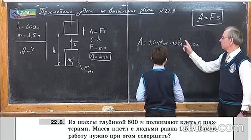 Задача на определение величины работы по подъему клети с шахтерами из шахты