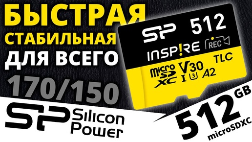 Быстрая и стабильная карта памяти microSDXC Silicon Power Inspire 512GB (SP512GBSTXLA2V1N)