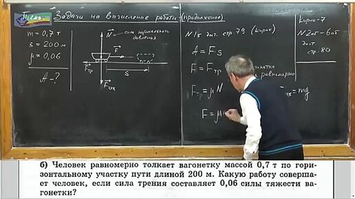 Задача на определение величины работы, совершаемой человеком толкающего вагонетку по горизонтальному участку пути