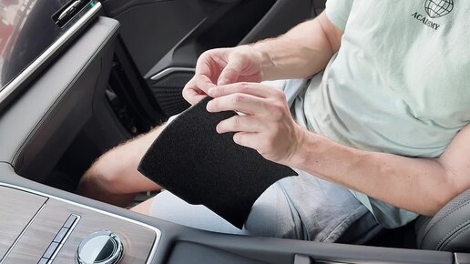 Установка обшивки автомобильным самоклеящимся карпетом в подлокотник Geely Monjaro 2025- Рестайлинг
