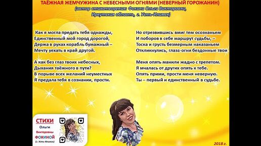Ольга Фокина (Усть-Илимск) - ТАЁЖНАЯ ЖЕМЧУЖИНА (читает автор)