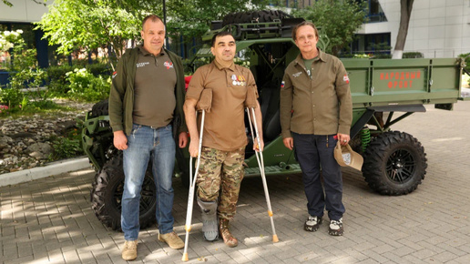 Охлобыстин и Мымрин вручили эвакуационный багги военному медику Арслану