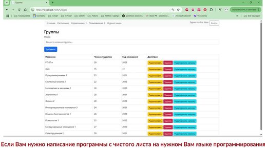 Веб-приложение «Расписание занятий для студентов». Программа на Visual C# + база данных MS SQL Server 2019. Дипломная работа (ВКР)