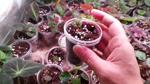 Результат укоренения бегоний листом.