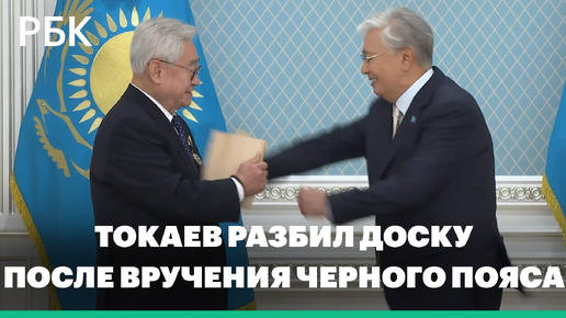 Президент Казахстана разбил доску после вручения ему черного пояса. Видео