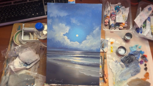 РЕАЛИСТИЧНЫЙ НОЧНОЙ МОРСКОЙ ПЕЙЗАЖ МАСЛОМ | Как нарисовать ночное море | OIL PAINTING SEASCPE