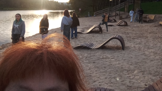 Рыба в пруду Джамгаровском в Москве, район Медведково и новые шезлонги