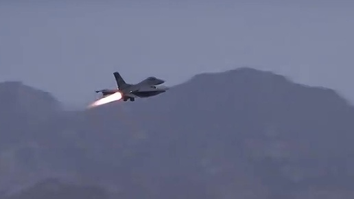 Истребитель F16 взлетает с аэродрома