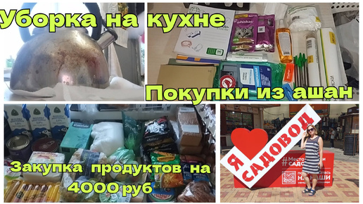 🛒Покупка продуктов на 4000 руб. Покупки с рынка в Люблино, покупки из ашан.🪠 Уборка на кухне. Поездка в Москву