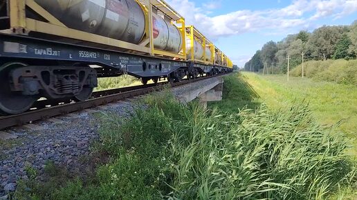 🚂Товарняк в лесу. Моя собака испугалась поезда😳