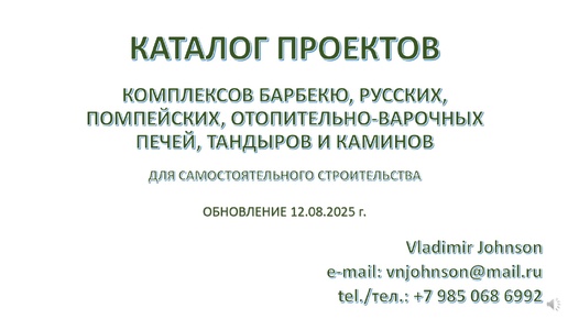 КАТАЛОГ ПРОЕКТОВ барбекю, русских, помпейских печей, тандыров и каминов. Обновление от 12.08.2025 г.