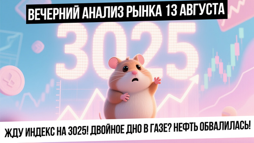 Вечерний анализ рынка 13 августа. Жду 3025 по индексу! Газ на дне! Нефть летит вниз! Что с рублем?
