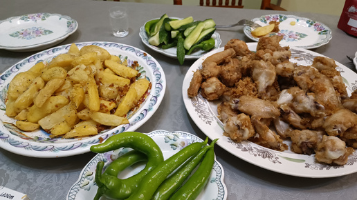 Куриные крылышки и картофель по деревенски во фритюре. Хрустящие, вкусные!