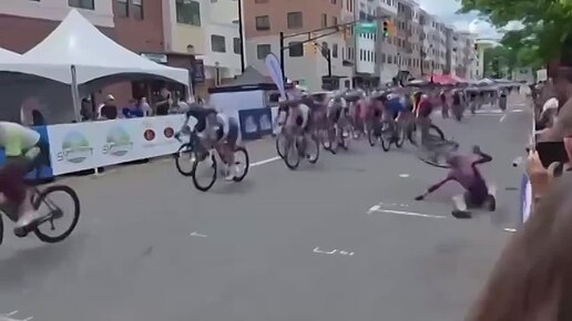 Парень комично сорвал массовый велозаезд😂