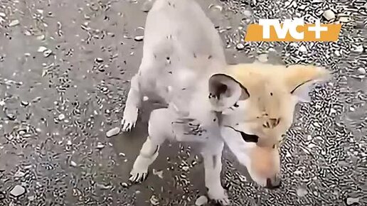 Маленький забитый лисёнок вышел на тропу за помощью