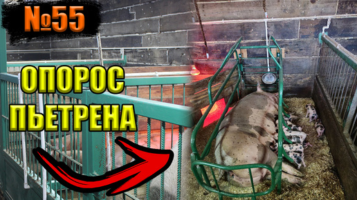 №55 Первый опорос свиноматки (пьетрен)! в опоросном станке!?