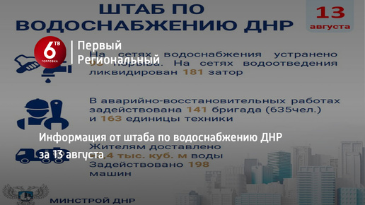 Информация от штаба по водоснабжению ДНР за 13 августа