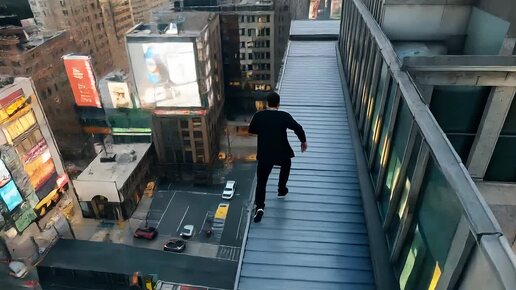 Фрираннер бежит по крышам высоток, перепрыгивая с одного здания на другое
