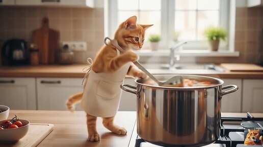 Как котик выучился на повара и всех накормил