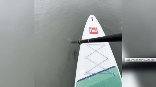 Деды Морозы с вёслами совершили заплыв по Оби на сапбордах