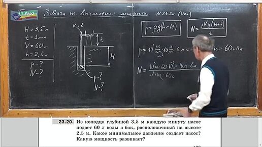 Задача на определение минимального давления и мощности создаваемого насосом при перекачивании им воды из колодца в бак.