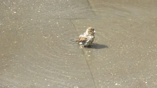 Воробей купается в луже