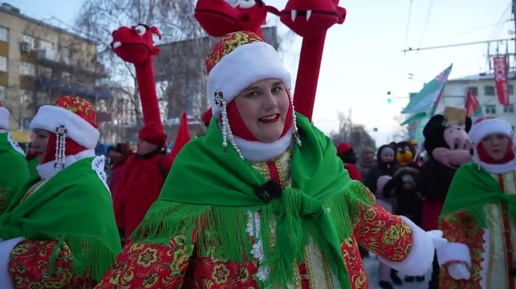 Новогодний парад с оркестром Дедов Морозов прошёл по центру Новосибирска
