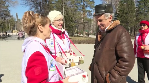 На улицах Новосибирска раздают значки-гвоздики за помощь ветеранам