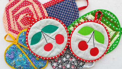 Мастер класс как сшить простые прихватки , без обработки края, нет косой бейки.