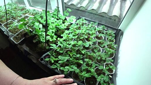 Земляника зацвела в рассаде на подоконнике
