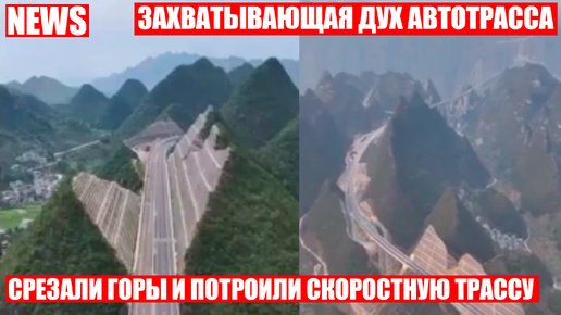 В Китае срезали горы для строительства автотрассы и возвели высочайший мост