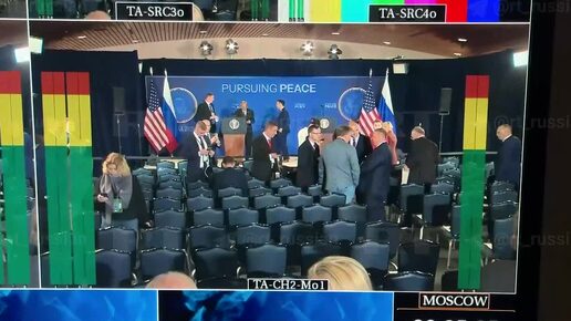 Обстановка в зале, где после переговоров должна пройти совместная пресс-конференция Путина и Трампа