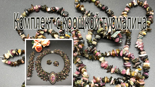 Колье и браслет на бисерной сетке с крошкой ТУРМАЛИНА. Украшения для Татьяны из Ижевска.