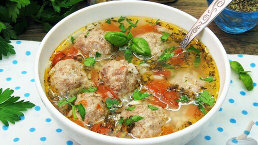 Вкус супа получается интереснее. Суп с рисом, фрикадельками и помидорами