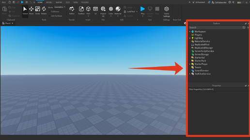 Как включить окна Explorer и Properties в Roblox Studio?
