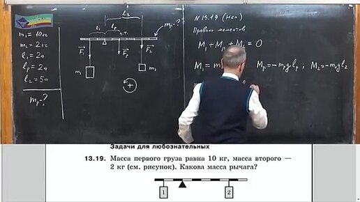 Задача на определение массы рычага по известным массам первого и второго грузов