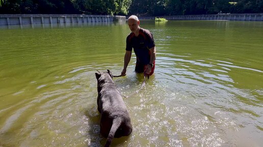 Пытаюсь научить Кане-корсо Зевса плавать!