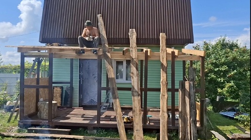 Наша любимая дача. Покрыли крышу у веранды. Кипячу решётки от плиты.
