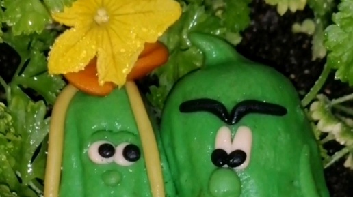 15-16.08.2025 / "Влюблённые огурчики" мои лепилки из полимерной глины. И первый огурчик срезал.